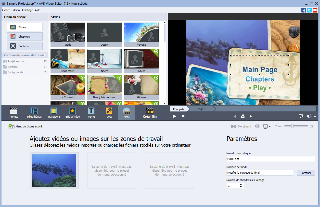 Notons par ailleurs l'intégration d'un outil entièrement dédié à la conception de disques vidé Blu-Ray avec des menus entièrement personnalisés.