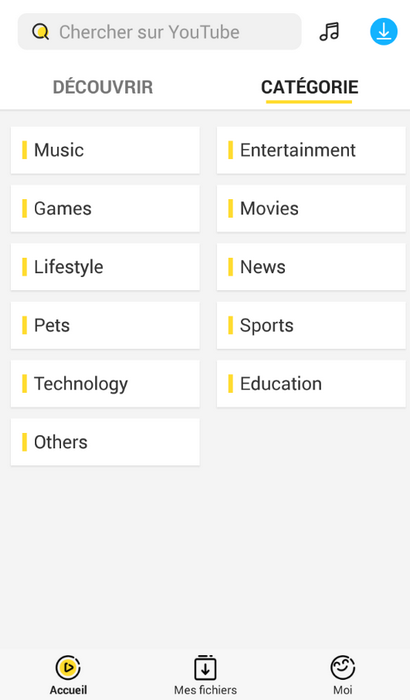 L'application est traduite en français, ce qui est un point plutôt positif. En quelques secondes, une fois sur la page d'accueil on comprend comme tout fonctionne. Par défaut, la recherche est effectuée sur YouTube mais vous pouvez ensuite utiliser les fonctionnalités de téléchargement sur d'autres plateformes citées précédemment.Télécharger une vidéo ne prend que quelques secondes puisqu'un bouton de téléchargement se trouve juste à côté de chaque miniature et titre. C'est alors très simple et intuitif même si pour être tout à fait franc : les vidéos au sein des applications ne sont pas toujours pertinentes.