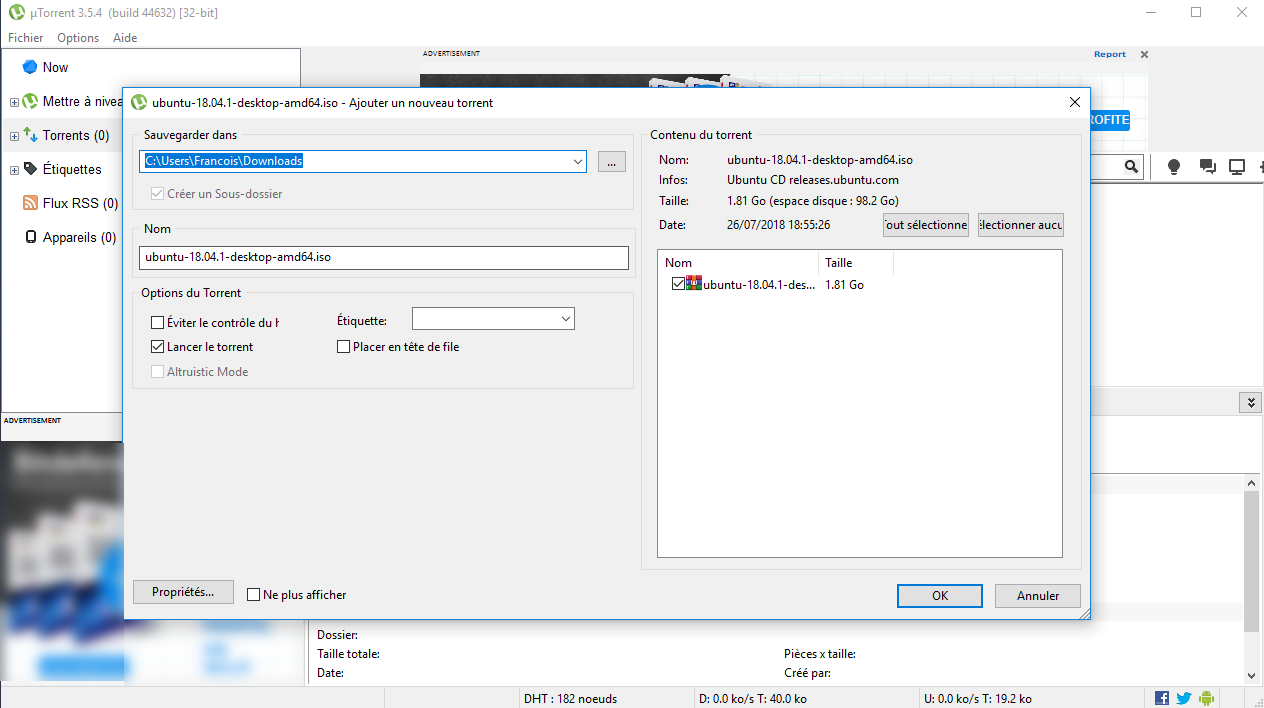 µTorrent est l'un des clients les plus légers du marché. Il propose une interface épurée, toutefois truffée de publicités dans sa version gratuite.